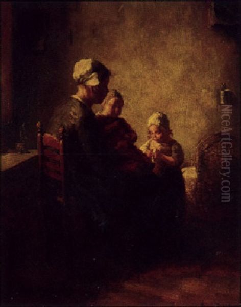 Bernard Johann De Hoog’s "Learning To Peel Potatoes" is a tender, intimate portrayal of rural life in late 19th-century Netherlands, capturing a humble domestic moment with remarkable warmth. The painting, executed in De Hoog’s characteristic realist-impressionist style, depicts a young child carefully learning the simple yet vital task of potato peeling under the guidance of an older figure, likely a mother or grandmother. Soft, diffused light filters into the modest interior, casting gentle highlights on the figures’ faces and the worn wooden table, while muted earth tones and subtle textures evoke a sense of quiet dignity. De Hoog, a lesser-known but skilled Hague School artist, was renowned for his sympathetic depictions of peasant life, bridging the gap between academic precision and the loose brushwork of Impressionism. Though not as celebrated as his contemporaries like Jozef Israëls, this work exemplifies the period’s fascination with everyday realism and remains a poignant reflection of tradition, family bonds, and rural resilience.