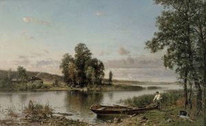 Landscape from Hame by Berndt Lindholm (1841–1914) is a captivating example of 19th-century Nordic Romanticism, embodying the era’s reverence for untamed nature and emotional depth. Painted during Lindholm’s artistic maturity, the work likely depicts Häme, a region in Finland, with its serene yet melancholic atmosphere—misty skies, muted earthy tones, and a tranquil interplay of light and shadow. Lindholm, influenced by the Düsseldorf School and French Barbizon painters, masterfully balances realism with lyrical expression, creating a scene that feels both intimate and expansive. Though less renowned internationally than contemporaries like Akseli Gallen-Kallela, Lindholm’s contribution lies in his poetic interpretation of Finnish landscapes, bridging Romanticism’s grandeur with emerging national identity. The painting’s quiet drama and subdued palette reflect a distinctive Nordic sensibility, making it a subtle yet significant piece in Scandinavian art history.