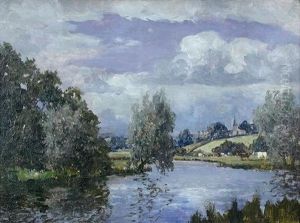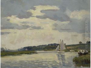 Greywillows, St. Olaves, Early July 1929: A Meandering Suffolk River Landscape With A Tree Standing Askant By The Riverside, A Windmill Beyond