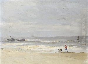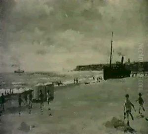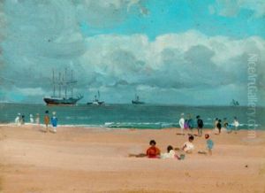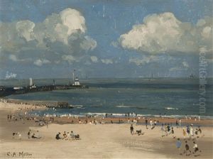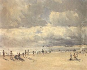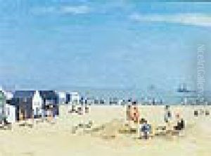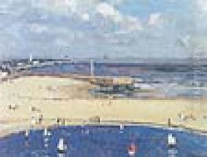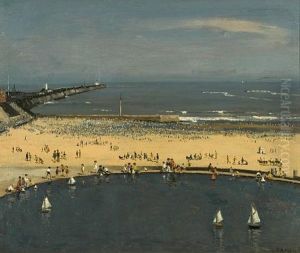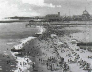 Crowded Beach, Gorleston, With Boating Pond To The Foreground