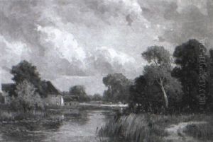 Sketch - St. Olaves; Cattle Grazing Beside A Suffolk River, A Windmill Beyond