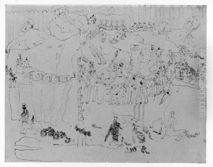 Huvudboken, nio teckningar forestallande detaljer av staende och liggande kvinnor, torsos samt i ett landskap och ett trad