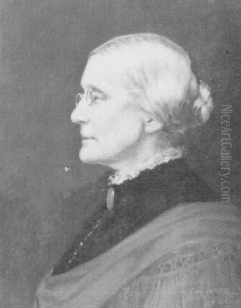 Carl Gutherz's Portrait of Susan B. Anthony is a striking depiction of one of America's most influential suffragists, radiating quiet determination through its dignified realism. Painted in 1900 shortly after Anthony's death, the portrait reflects Gutherz's academic training—evident in the precise rendering of facial features and soft chiaroscuro shading—yet carries an arresting modernity in its unflinching focus on the subject’s aging visage. Anthony appears contemplative yet resolute, her famous steel-rimmed spectacles resting upon her nose as she gazes slightly beyond the viewer, embodying her lifelong activism. Though Gutherz was not among the era’s most revolutionary artists, this work holds historical significance as one of the few formal portraits of Anthony painted during her lifetime. It bridges late 19th-century academic portraiture and early activist iconography, offering an intimate counterpoint to photographic depictions of the movement’s leader. The muted earth tones and restrained brushwork lend solemnity, positioning Anthony not as a mythic figure but as a humanized pioneer—an approach that resonated with Progressive Era ideals.