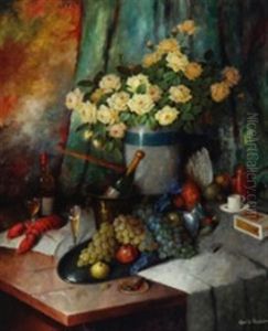 Bring the timeless beauty of Carl Holger Fischer's A Still Life With Yellow Roses, Fruits, Kettle, Glass, Bottles And A Pearl Necklace On A Table into your home with a handmade oil painting reproduction. Carefully recreated on canvas by skilled artists using traditional techniques, this piece captures the delicate brushwork, subtle light, and vibrant color of the original masterpiece. With museum-level quality and rich texture, it brings elegance and artistic depth to any space. Enjoy free shipping and make this masterpiece a part of your personal collection.