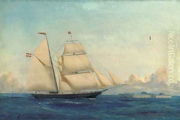 Bring the timeless beauty of Carl Julius Emil Olsen's The Danish schooner Julius of Copenhagen off a Danish fortress into your home with a handmade oil painting reproduction. Carefully recreated on canvas by skilled artists using traditional techniques, this piece captures the delicate brushwork, subtle light, and vibrant color of the original masterpiece. With museum-level quality and rich texture, it brings elegance and artistic depth to any space. Enjoy free shipping and make this masterpiece a part of your personal collection.