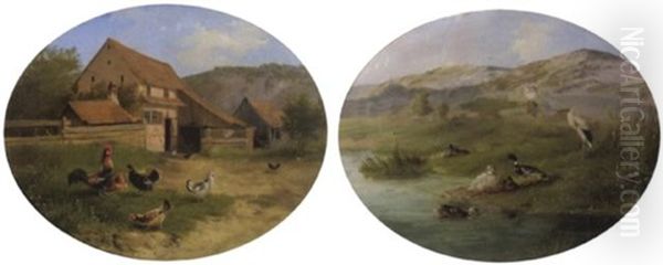 Carl Jutz the Elder’s Hühnerhof (Farmyard with Chickens) transports viewers into a charming rural tableau brimming with life. Painted in the late 19th century, this meticulously detailed work captures a bustling poultry scene—feathered hens pecking at the ground, a vigilant rooster, and rustic wooden structures bathed in soft, natural light. Jutz’s hyper-realistic yet atmospheric approach reflects the Bavarian animalier tradition, where animals were rendered with scientific precision yet imbued with narrative warmth. Renowned for his poultry depictions, Jutz elevated barnyard subjects into fine art, bridging Romanticism’s sentimentality and Realism’s unflinching detail. Today, Hühnerhof stands as a testament to his mastery, celebrated for its technical brilliance and nostalgic evocation of agrarian simplicity—a jewel of 19th-century European genre painting.