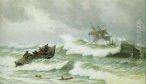 Redningsbaden Gar Ud Oil Painting by Carl Locher
