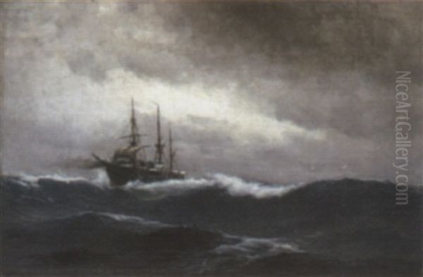 Carl Locher’s Ship On captures the raw power and stillness of maritime life in a mesmerizing balance. Painted in the late 19th or early 20th century, the work reflects Locher’s dedication to realism and his deep connection to the Danish coastal landscape. The scene likely portrays a ship resting near shore, with meticulous attention to the play of light on water and weathered wooden hulls—a hallmark of Locher’s intimate, almost meditative approach to seascapes. Though less globally renowned than his Skagen School peers like P.S. Krøyer, Locher’s works are prized for their quiet authenticity and technical precision, bridging genre painting and marine art traditions in Northern European realism.