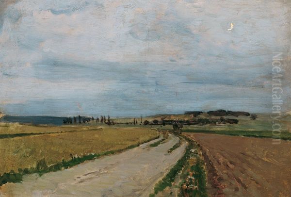 Carl Moll's Stimmungsstudie Abend, Michelhausen (Plankenberg) is a mesmerizing example of Austrian mood painting at the turn of the 20th century. The work bathes in the delicate twilight hues of an evening in Michelhausen, capturing the tranquil transition from day to night with subtle gradations of blues, purples, and ochres. A master of the Stimmungsstil (mood style), Moll—a key figure in the Viennese Secession and protégé of Emil Jakob Schindler—elevates this rural landscape into a poetic meditation on light and atmosphere. Brushstrokes blend softly, dissolving architectural details and trees into a harmonious, almost dreamlike veil. As one of Moll’s many plein-air studies of Plankenberg, this painting reflects the Secessionists' break from academic rigidity, prioritizing emotional resonance over literal representation. Its historical significance lies in bridging Impressionist techniques with Symbolist introspection, influencing later Austrian modernists like Klimt.