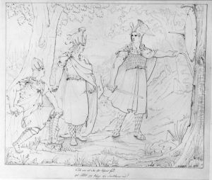 The painting Strid på Samsø mellan Örvar Odd och Angantyr’s elva bröder by Carl Wahlbom (1810–1858) captures a dramatic moment from Norse mythology with remarkable intensity. Wahlbom, a Swedish Romantic artist trained in Düsseldorf and Paris, masterfully conveys the violent clash between Örvar Odd and Angantyr’s eleven brothers through dynamic composition and vivid contrasts. The stormy sky, rugged landscape, and tangled bodies evoke a sense of primal struggle, while meticulous details—such as the glint of weapons and flowing robes—imbue the scene with visceral tension. As a prime example of 19th-century Scandinavian Romanticism, Wahlbom’s work reflects the era’s fascination with national epics and emotional grandeur. Though less internationally renowned than contemporaries like Delacroix, his mythological scenes hold significant cultural value in Nordic art history, bridging literary tradition and visual drama.