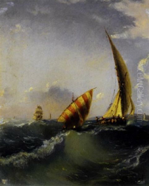 Carlo Bossoli’s Barche A Vela Ad Alicante captures the vibrant essence of 19th-century Mediterranean coastal life with luminous precision. The painting, executed in Bossoli’s characteristic Romantic-Realist style, depicts sailboats bobbing gently in Alicante’s sun-drenched harbor, their reflections shimmering on the azure water. The composition balances dynamic movement—billowing sails, figures engaged in nautical tasks—with serene atmospheric depth, rendered through delicate light effects and meticulous architectural details of the distant shoreline. A Swiss-Italian painter renowned for his travel scenes, Bossoli (1815–1884) specialized in documenting southern European landscapes with topographical accuracy and poetic sensibility. This work exemplifies his ability to merge documentary detail with artistic charm, offering both a historical record of maritime culture and an evocative visual escape. While less widely recognized than his contemporary Orientalists, Bossoli’s oeuvre holds significance for its ethnographic value and contribution to Romantic-era travel art, bridging the gap between academic precision and plein-air spontaneity.