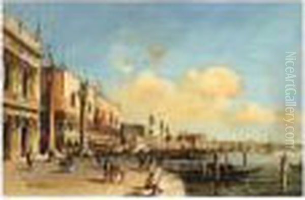The Doge’s Palace, Venice, signed by Carlo Grubacs, is a mesmerizing 19th-century Venetian view painting that captures the grandeur of Venice's iconic Gothic landmark bathed in shimmering light. Grubacs, a noted Venetian painter, masterfully renders the palace’s intricate arches and delicate tracery against the bustling canal life, infusing the scene with a romantic, almost dreamlike quality. His precise yet lively brushwork reflects the influence of the Vedutisti tradition, echoing Canaletto’s topographical accuracy while embracing a softer, more atmospheric touch typical of his era. This work exemplifies the enduring European fascination with Venice as a luminous, timeless city, and Grubacs’ paintings remain prized for their historical charm and technical finesse, bridging 18th-century veduta and 19th-century Romanticism.