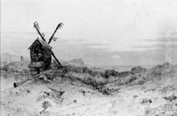 The painting Sunset On The Coast by Charles Brooke Branwhite captures the fleeting beauty of dusk over a coastal landscape, blending Romanticism’s emotional grandeur with the precision of Victorian naturalism. Branwhite, a 19th-century British artist renowned for his seascapes and atmospheric effects, renders the scene with luminous golds and deep blues, where the sinking sun casts a warm glow over rolling waves and rugged cliffs. The composition balances drama and tranquility—clouds swirl dynamically, yet the water’s reflective stillness invites contemplation. Though less celebrated than J.M.W. Turner’s works, Branwhite’s piece reflects the era’s fascination with nature’s sublime power, positioning it as a bridge between Romantic idealism and later plein-air realism. The painting’s historical significance lies in its embodiment of Victorian aesthetic values, where art served as both emotional escapism and a tribute to natural beauty.