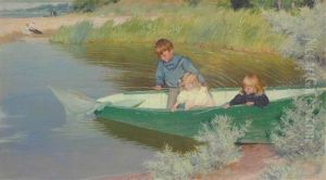 Charles Curran's Great Expectations (1888) is a luminous example of American tonalism, capturing a fleeting moment of quiet introspection. The painting depicts a young woman in a white dress seated on a sunlit porch, her gaze turned toward the horizon as soft light filters through translucent curtains. Curran masterfully blends realism with atmospheric subtlety, his muted palette of creams, ivories, and delicate blues evoking both nostalgia and promise. Created during America's Gilded Age, the work reflects the era's fascination with domestic idylls and poetic ambiguity, bridging the precision of academic training with emerging Impressionist influences. Though less renowned than his contemporaries like William Merritt Chase, Curran's ability to suffuse ordinary scenes with emotional resonance secured his place as a nuanced chronicler of turn-of-the-century femininity and light. The painting's title—possibly referencing Dickens' novel—adds narrative intrigue, inviting viewers to ponder the sitter's silent aspirations.