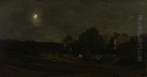 A Stormy Landscape With Figures In A Field And A View Of A Village