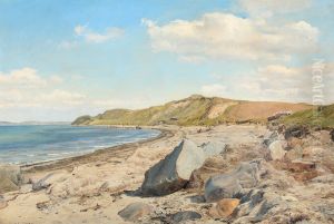 Charles Godfredsen’s Udsigt Over Mols Bjerge captures the serene beauty of Denmark’s Mols Bjerge hills with a delicate blend of realism and impressionistic warmth. Painted in the early 20th century, the artwork portrays a sweeping vista bathed in soft, natural light, where rolling green slopes meet a tranquil sky, evoking a sense of timeless harmony. Godfredsen, a lesser-known but skilled Danish landscape painter, drew inspiration from the Nordic countryside, infusing his work with lyrical atmosphere. Stylistically, the piece balances meticulous detail with loose brushwork, echoing the Romantic tradition while hinting at modern plein-air spontaneity. Though not widely recognized in global art history, it represents Denmark’s regionalist movement, celebrating local geography with quiet reverence—a gem for collectors of Nordic art.