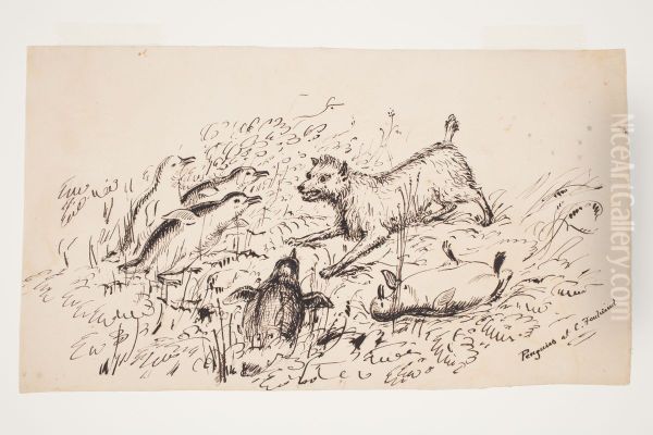 Charles Heaphy’s Penguins at Cape Foulwind (1869) captures the untamed beauty of New Zealand’s rugged coastline with remarkable sensitivity. The watercolor depicts a colony of blue penguins clustered along the rocky shores of Cape Foulwind, their small, dynamic forms contrasting against the wild, windswept backdrop. Heaphy, an early European explorer-artist working during New Zealand’s colonial period, combines topographical precision with Romanticism’s emotive touch—highlighting nature’s sublime power. As one of the first European depictions of the region’s wildlife, the work holds historical significance, bridging scientific curiosity and artistic expression. Its delicate transparency and atmospheric depth reflect Heaphy’s skill in watercolor, cementing his role in documenting New Zealand’s landscapes during the 19th century. The painting’s rarity and regional importance make it a cherished piece in Oceania’s colonial art history.