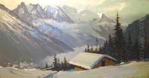 L'aiguille De Dru, Vue De Prey De Chamonix En Hiver (+ Porche D'eglise En Montagne; 2 Works)