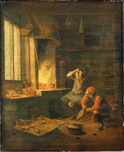 In Charles Louis Lucien Müller’s The Chemist, the viewer steps into a dimly lit alchemy laboratory filled with quiet intensity. A solitary figure hunches over glass vessels and ancient books, bathed in a warm glow that dances across copper instruments and parchment pages. Müller's Romantic realism shines through dramatic chiaroscuro and meticulous detail, echoing his academic training under Baron Gros and historicist influences from 19th-century France. Painted circa 1854, this work reflects the era’s fascination with science as both mystery and progress, positioning Müller as a bridge between Delacroix’s emotional depth and Courbet’s grounded realism. Though less renowned than his mentor’s grand history paintings, The Chemist remains a captivating example of how Romanticism celebrated solitary intellectual pursuit—making it a hidden gem in museum collections like the Musée des Beaux-Arts de Strasbourg.