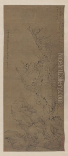 When displaying Ku Mu Zhu Shi Zhou in contemporary interiors, opt for minimalist spaces where its lyrical brushwork can breathe - perhaps a scholar's study with pale oak furnishings or a loft-like office with concrete textures. The painting's monochromatic palette harmonizes beautifully with neutral schemes featuring warm greys, faded indigos or rice-paper beige. For dimensional dialogue, pair its vertical composition with horizontal furniture elements like low platform desks. Given its probable mid-size format (typical hanging scroll dimensions), install it as a focal point at eye-level in intimate spaces rather than vast halls. Consider accompanying it with rough-textured ceramics or a single twisting branch arrangement to echo its organic forms. Lighting should be soft and directional - bamboo shades or adjustable spotlights that mimic traditional candle illumination while protecting the delicate pigments. This masterwork deserves contemplative space where viewers can appreciate its quiet drama.