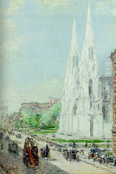 Bring the timeless beauty of Childe Hassam's The Cathedral And Fifth Avenue In June into your home with a handmade oil painting reproduction. Carefully recreated on canvas by skilled artists using traditional techniques, this piece captures the delicate brushwork, subtle light, and vibrant color of the original masterpiece. With museum-level quality and rich texture, it brings elegance and artistic depth to any space. Enjoy free shipping and make this masterpiece a part of your personal collection.