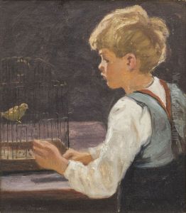 A boy and a girl with a canary. (72 x 63 cm).
