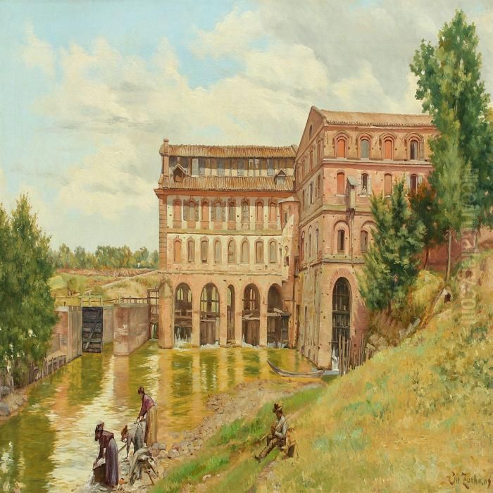 Christian Zacho's Women Washing Clothes By A Larger Riverhouse is a serene yet evocative example of 19th-century Danish Realism. The painting captures a quiet moment of daily life, where women kneel by the water’s edge, their figures bathed in soft natural light. Zacho’s meticulous brushwork and delicate color palette—dominated by earthy browns, muted greens, and the shimmering reflection of water—create a harmonious, almost poetic atmosphere. As a member of the Skagen Painters’ circle, Zacho was deeply influenced by the plein-air tradition, emphasizing naturalism and the fleeting effects of light. Though less renowned than his contemporaries like P.S. Krøyer, Zacho’s work offers an intimate glimpse into rural Scandinavian life, bridging Romantic idealism and the rise of modern realism.