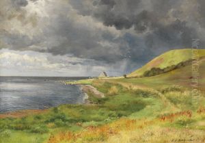 Christoffer Wilhelm Eckersberg's "Regnbue Over Havet" (Rainbow Over the Sea) is a captivating masterpiece of Danish Golden Age painting, blending meticulous realism with poetic atmosphere. Completed in 1836, this oil painting depicts a fleeting maritime moment—a luminous rainbow arching over a tranquil sea, framed by drifting clouds and a distant sailboat. Eckersberg’s academic precision shines in the precise rendering of light and water, while the composition balances serenity and dynamism. As a pioneer of Danish plein-air painting and a central figure in 19th-century European art, Eckersberg bridged Neoclassicism and Romanticism, infuming scientific observation with subtle emotional depth. "Regnbue Over Havet" exemplifies his ability to transform ordinary natural phenomena into timeless visual harmony, securing its place as an iconic work in Scandinavia’s artistic heritage.