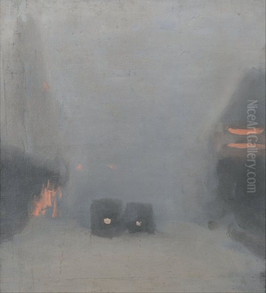 Clarice Beckett's Passing Trams (c.1931) captures Melbourne's misty twilight with an almost spiritual quietude. The painting envelops viewers in a silvery haze where electric trams emerge like ghosts, their blurred forms dissolving into muted streetscapes—a signature of Beckett's tonalism. As a leading figure of Australia’s interwar modernism, she redefined urban scenes through delicate gradations of tone rather than sharp lines, influenced by Whistler’s nocturnes yet distinct in her antipodean sensibility. Neglected during her lifetime, Beckett’s works now symbolize early 20th-century atmospheric realism, with Passing Trams epitomizing her ability to transmute mundane commutes into meditative poetry.