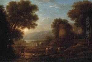 A Wooded River Landscape With A Herdsman And His Cattle