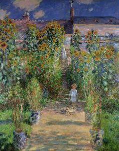 Claude Monet’s Japanese Footbridge, Giverny (1899) is a luminous masterpiece from his iconic Water Lilies series, capturing the dappled light and dreamlike tranquility of his garden pond in Giverny. Painted during his later years, the work exemplifies Impressionism’s fascination with light, reflection, and fleeting moments. The arched bridge, draped in wisteria, melts into a symphony of vibrant greens, blues, and purples, its mirror image dissolving into abstract brushstrokes on the water’s surface. This painting marked Monet’s shift toward near-abstraction, influencing future movements like Abstract Expressionism. As a pivotal piece in his exploration of perception and nature’s poetry, it remains a cornerstone of modern art, celebrated for its emotional depth and technical innovation.