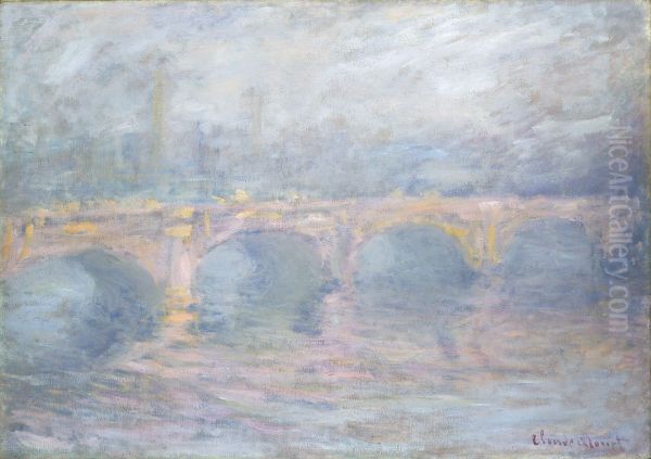 Claude Monet's Waterloo Bridge, London, at Sunset (1903) is a breathtaking example of Impressionist mastery, capturing the fleeting interplay of light, atmosphere, and urban modernity. Bathed in a hazy glow of oranges, pinks, and purples, the Thames shimmers beneath the bridge’s industrial silhouette, dissolving into delicate brushstrokes that evoke the fog-laden air of London. Painted during Monet’s stays in the city between 1899 and 1901, this work is part of his iconic London Series, where he obsessively revisited the same vistas—Charing Cross Bridge, Parliament, and Waterloo Bridge—under varying light conditions. Breaking from traditional realism, Monet’s loose, textured application of color prioritizes sensory experience over detail, cementing his role as a pioneer of Impressionism. The series reflects his fascination with transient natural effects amidst industrialization, marking a pivotal moment in art history where modernity and nature coalesce through an experimental lens.