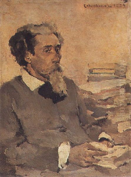 The Retrato de Bulhao Pato by Columbano Bordalo Pinheiro is a striking example of 19th-century Portuguese realism, capturing the essence of the poet and intellectual Raimundo António de Bulhão Pato with remarkable psychological depth. Columbano, a leading figure in the Grupo do Leão and a pivotal artist in Portugal’s cultural revival, employs a subdued yet rich palette of earthy tones and muted contrasts, drawing attention to the sitter’s introspective gaze and dignified presence. The background, rendered in deep, shadowy hues, enhances the portrait’s solemnity, while the meticulous brushwork reflects Bordalo Pinheiro’s mastery in blending naturalism with emotional intensity. This work not only exemplifies his transition from academic conventions to more personal, expressive forms but also stands as a testament to Portugal’s fin-de-siècle artistic and intellectual milieu, bridging Romantic sensibilities and emerging modernist trends.