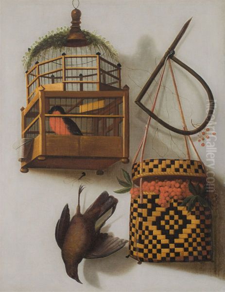 Trompe l'oeil with a bird cage