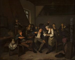 Tavern Interior With Boors Drinking, A Peasant And A Woman Conversing