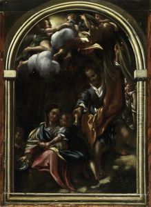 Die Hl. Familie Mit Engeln In Einer Architekturumrahmung