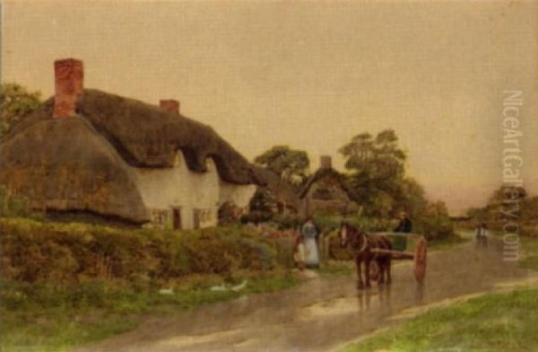 Horse And Cart Outside Cottages