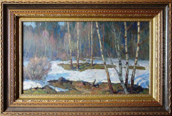 Step into the wintry stillness of Czeslaw Znamierowski's "Winter Forest," where delicate birch trunks rise like silver ghosts against the Prussian blue twilight. The Lithuanian painter (1890–1977), renowned for his lyrical realism, captures that magical moment when snow-laden branches glitter under the fading sun – a sublime fusion of Impressionist light effects with precise botanical detailing. This 20th-century masterpiece occupies a unique niche in Eastern European landscape painting, bridging academic traditions with modernist sensitivity to natural rhythms. The painting's melancholic tranquility reflects Znamierowski's profound connection to Baltic forests, while its crystalline textures showcase his virtuoso handling of layered glazes to achieve luminous snow effects rarely matched in northern landscape art.