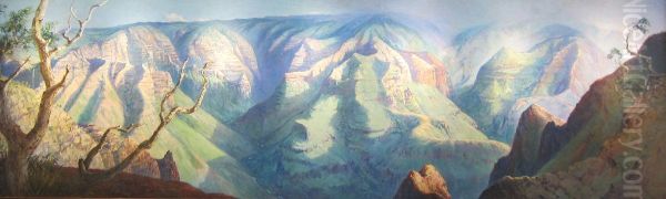 David Howard Hitchcock’s Waimea Canyon, Kauai (c. 1890s) is a breathtaking homage to the natural grandeur of Hawaii’s "Grand Canyon of the Pacific." The painting immerses viewers in sweeping, layered vistas of emerald peaks and rust-red ravines, bathed in a soft golden haze that evokes the islands’ tropical light. Hitchcock, a key figure in Hawaii’s artistic legacy, blends European Romanticism’s dramatic landscapes with subtle Impressionist touches—loose brushwork and luminous color—to capture the canyon’s raw beauty. This work reflects his pivotal role in establishing Hawaiian landscape painting as a distinct genre, bridging 19th-century academic traditions and modern sensibilities. Its historical significance lies in elevating Hawaii’s landscapes beyond ethnographic documentation to a celebrated artistic subject, making it a prized piece in Pacific Rim art collections.