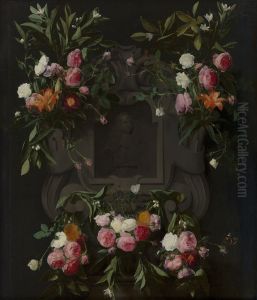 A Garland of Flowers on a Carved Stone Medallion