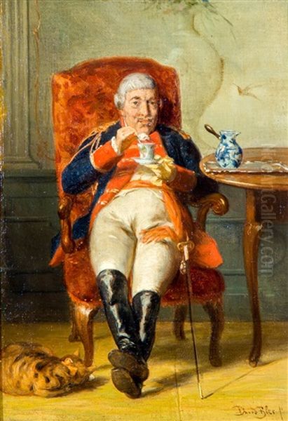 David Bles’ Een Welverdiende Rust (A Well-Earned Rest) is a captivating 19th-century genre painting that exudes warmth, wit, and a touch of Dutch domestic charm. Set in a cozy interior, the artwork depicts an elderly gentleman enjoying a peaceful nap by the fireside, surrounded by books, a pipe, and a loyal dog—a humorous yet tender portrayal of bourgeois comfort. Created during the Hague School era, Bles' style blends meticulous realism with subtle narrative storytelling, echoing the influence of 17th-century Dutch masters like Jan Steen. The painting’s intimate scale and playful details, such as the sleeping dog mimicking its master’s posture, reveal Bles’ keen observation of human (and canine) nature. Though less celebrated than his contemporaries, Bles’ works occupy a unique niche in art history, bridging Romantic sentiment and the rising middle-class tastes of the late 1800s.