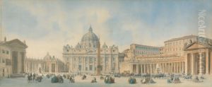 A Group Of Nuns And Townspeople In Front Of An Old Abbey