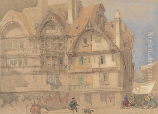 Saint Lo by David Roberts transports viewers to 19th-century Normandy with its evocative depiction of the medieval Church of Saint-Lô, enveloped in golden sunlight that casts dramatic shadows across weathered stone facades. Painted in the 1830s during Roberts’ European travels, this watercolour exemplifies the Romantic era’s fascination with Gothic architecture and the sublime. The meticulous detailing of crumbling arches and bustling townsfolk reveals Roberts’ archaeologist-like precision, while the theatrical play of light nods to J.M.W. Turner’s influence. As a key figure in British topographical art, Roberts bridged documentary accuracy with poetic atmosphere, making this work significant for its role in popularizing continental Gothic heritage during the Victorian age. The painting’s intimate scale (typically under 50cm) enhances its jewel-like luminosity, inviting contemplative engagement.