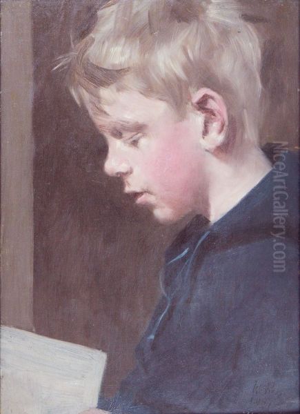 The Profile Portrait of Young Boy Holding a Book by Denman Waldo Ross (1853–1935) exudes quiet contemplation and intellectual promise, capturing a young boy engrossed in study. Painted with refined detail and muted tones characteristic of American realist portraiture in the late 19th to early 20th century, Ross’s work reflects his academic rigor—both as a Harvard professor of art theory and a skilled practitioner influenced by Renaissance techniques. The composition’s profile perspective nods to classical traditions, while its intimate scale and restrained palette convey depth and introspection. Though less widely recognized than contemporaries like Sargent, Ross played a pivotal role in American arts education and collecting, making this portrait a gem bridging academic precision and enduring emotional resonance.