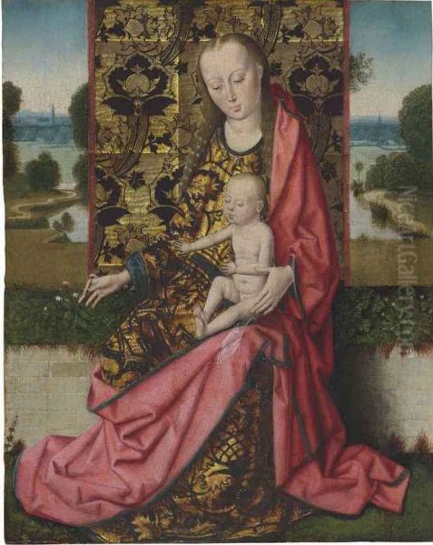 Dieric Bouts' Virgin and Child (c. 1455–1460) exudes serene devotion through its delicate rendering and muted warmth. The Flemish master depicts Mary cradling the Christ Child with tender solemnity, their halos glowing softly against a deep black background that intensifies the luminosity of their figures. Typical of Early Netherlandish painting, Bouts employs meticulous oil techniques to create lifelike textures—from the gossamer veil framing Mary’s face to the plump folds of the infant’s skin. The composition’s quiet intimacy reflects Bouts' signature piety, bridging Gothic spirituality with emerging Renaissance naturalism. As one of few surviving devotional panels by the artist, it holds significance for its influence on Northern European portraiture, particularly in its psychological depth and symbolic use of color (Mary’s blue robe denoting heavenly grace). The restrained emotion and geometric harmony make it a quintessential example of 15th-century Flemish sacred art.