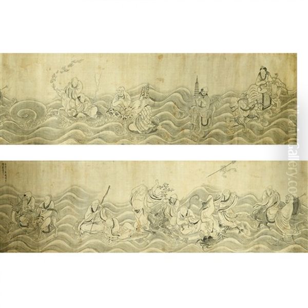 For modern interiors, Luohan lends timeless elegance to spaces designed for contemplation, such as a study, meditation room, or minimalist office. Its monochrome palette harmonizes effortlessly with neutral tones—think cream walls, dark wood furnishings, or a subdued grey sofa—while the delicate ink lines invite close appreciation, ideal for placement above a low console or beside a floor lamp. A medium-sized reproduction (approximately 24" x 36") would anchor a focal wall without overwhelming the room, complemented by organic textures like linen or stone to echo its classical restraint. In corporate settings, it subtly underscores tranquility and wisdom, pairing well with contemporary Asian-inspired decor or sleek, uncluttered workspaces. Avoid competing patterns; instead, let the painting’s negative space "breathe," reinforcing its calming influence.