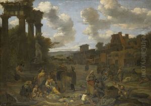 Helmbreker moved to Rome at a young age, as did many Northern European artists seeking to study Italian art and antiquities first-hand. Rome during the 17th century was a vibrant center for artists, and Helmbreker became part of the Bentvueghels, a society of mostly Dutch and Flemish artists living in Rome. The members of this group, known for their boisterous behavior and the adoption of nicknames, called Helmbreker 'Dirk van Haarlem.' His works from this period show a strong influence from the Roman countryside, and he often depicted everyday life with peasants and shepherds amidst ancient ruins, combining a sense of romanticism with realistic detail.