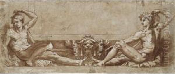 Deux Etudes De Nus Masculins De Part Et D'autre D'un Cartouche