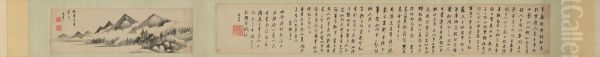 Dong Qichang's "Landscape in the Manner of Mi Fu" (Dong Qi Chang Fang Mi Fei Shu Hua He Juan) is a masterful tribute to the legendary Song dynasty painter Mi Fu, capturing the ethereal "Mi dot" technique with ink washes that evoke mist-shrouded mountains and dreamlike scenery. Created during the Ming dynasty, this handscroll exemplifies Dong's scholarly approach to art—his reverence for ancient masters while innovating with deliberate, calligraphic brushstrokes. As a leading theorist of the "Southern School," Dong championed literati painting (wenrenhua), emphasizing expressive spontaneity over decorative realism. This work not only solidifies his status as a bridge between Song traditions and later Qing scholars but also reflects his philosophy that art should convey "the idea beyond the brush." The composition’s rhythmic voids and dense ink create a meditative tension, inviting viewers into a poetic, intellectual realm.