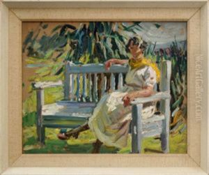 Woman Seated Full Length In A Garden
